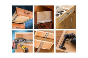 عرض و عمق کابینت را اندازهگیری کنید. کشو کابینت را خالی کنید و آن را بیرون بیاورید. بخش یک تکه ریل را با باز نمودن ضامن، جدا کنید و بخش دو تکه را از سمت پشت به لبه کار، در انتهاییترین بخش، قرار داده و توسط سوراخها، ریل را به باکس کابینت پیچ و نصب کنید. همین عمل را در هر دو طرف باید انجام دهید. بخش یک تکه را با در نظر گرفتن جهت آن به انتهاییترین بخش کشو پیچ کرده و قسمت بسته شده ریل باید در بخش جلویی کشو قرار داشته باشد. حالا کشو را بر اساس شیارهای دو بخش جا بزنید.