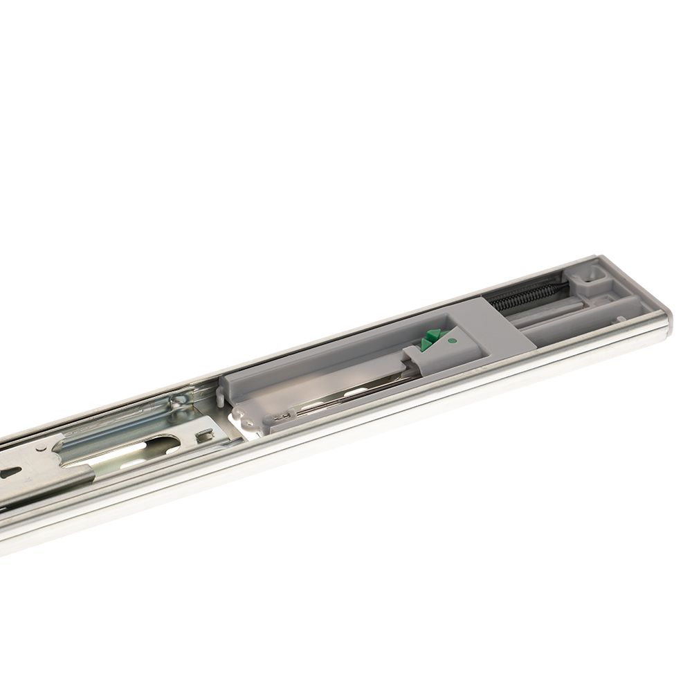 ⚠️ نکته: این ریل به صورت فولاِکستند (Full Extension) نیست؛ بنابراین کشو بهطور کامل از یونیت خارج نمیشود، اما کاربر همچنان دسترسی راحتی به فضای کشو خواهد داشت.